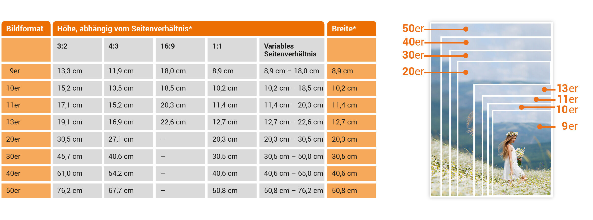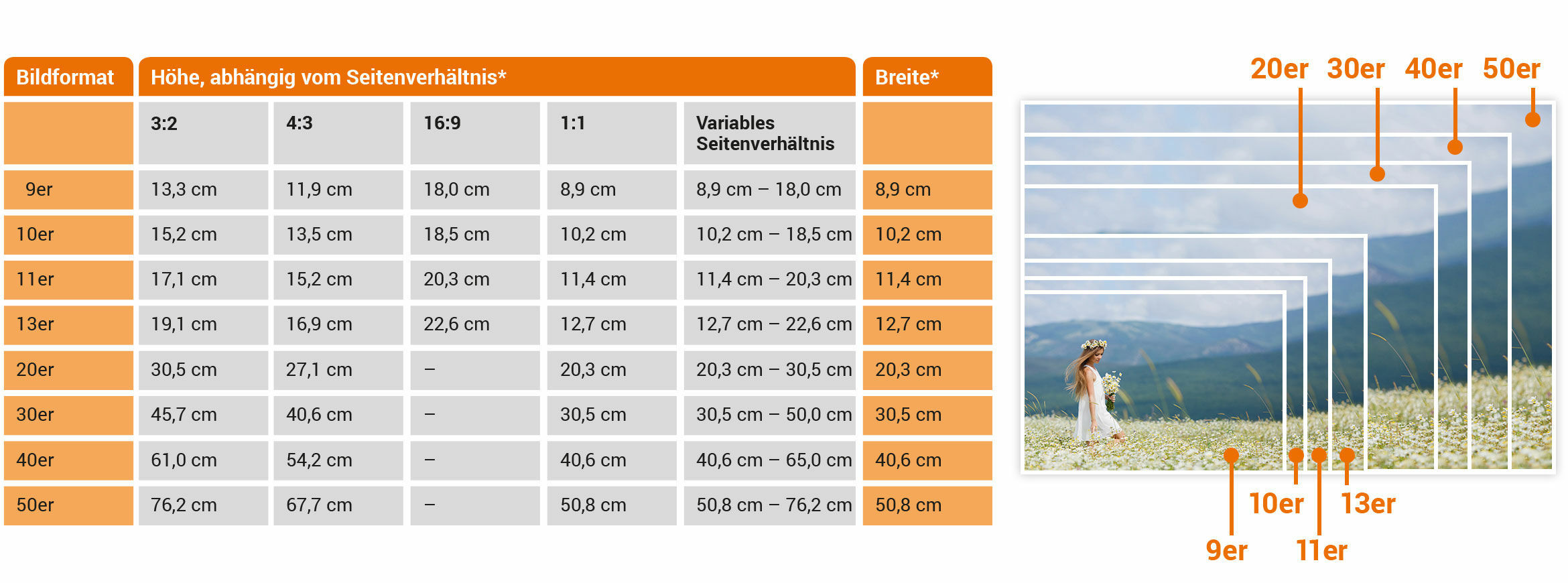Die Breite und Höhe Ihrer Bilder ergeben sich aus dem gewählten Bildformat und dem sogenannten Seitenverhältnis.