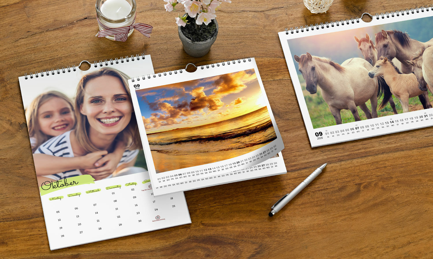 Wählen Sie aus schönen, neuen Designs mit mehr Raum für Ihre Bilder. Ansprechende Designkalendarien für Ihre Termine im hochwertigen Digitaldruck Matt.