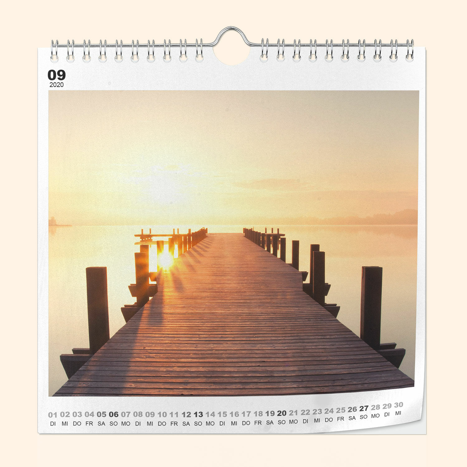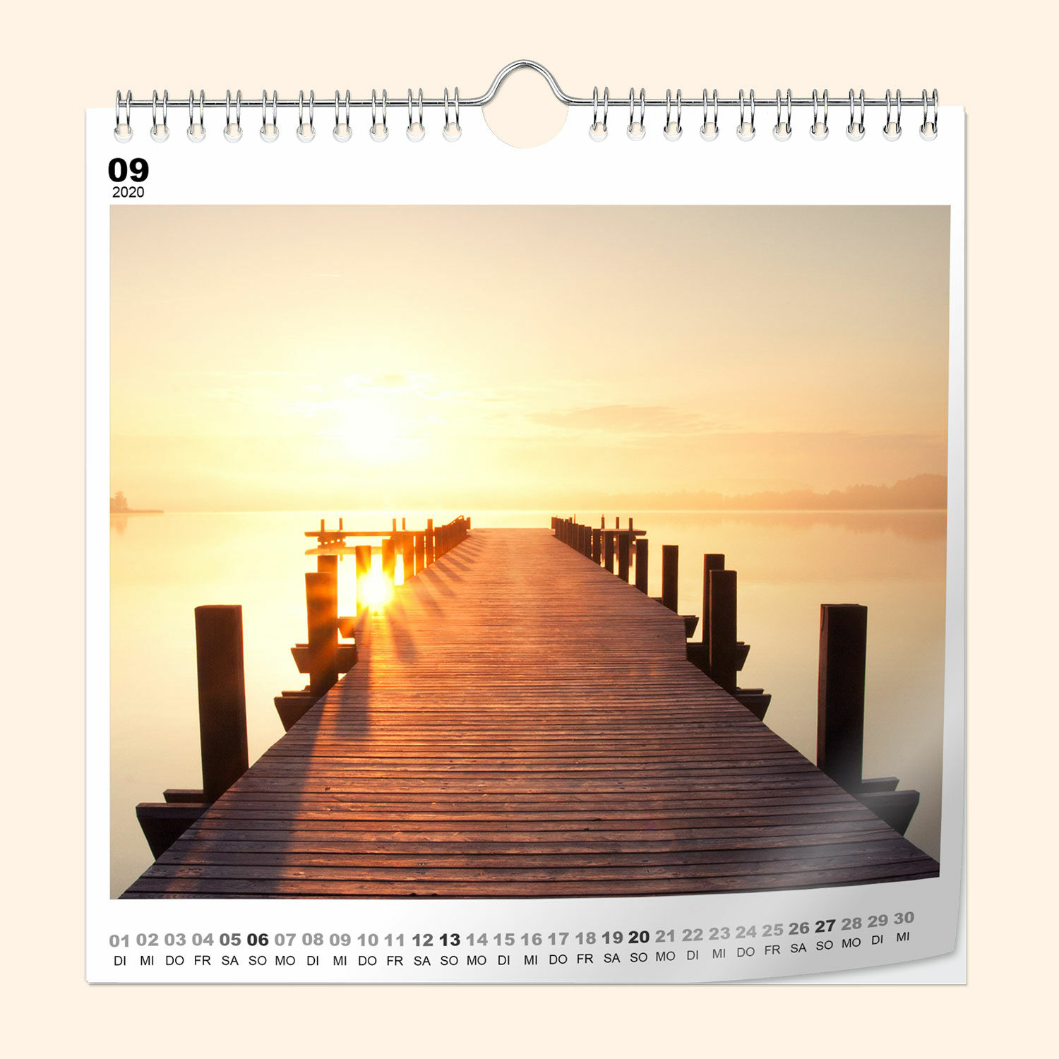 Für ein hohes Maß an Stabilität binden wir Ihren Kalender mit einer Spiralbindung. Dadurch können Sie Monat für Monat mühelos das Kalenderblatt wechseln und haben alle Blätter dauerhaft zusammen. So müssen Sie niemals die einzelnen Kalenderblätter entfernen und können die schönen Erinnerungen auch noch nach einem Monatswechsel immer wieder genießen.